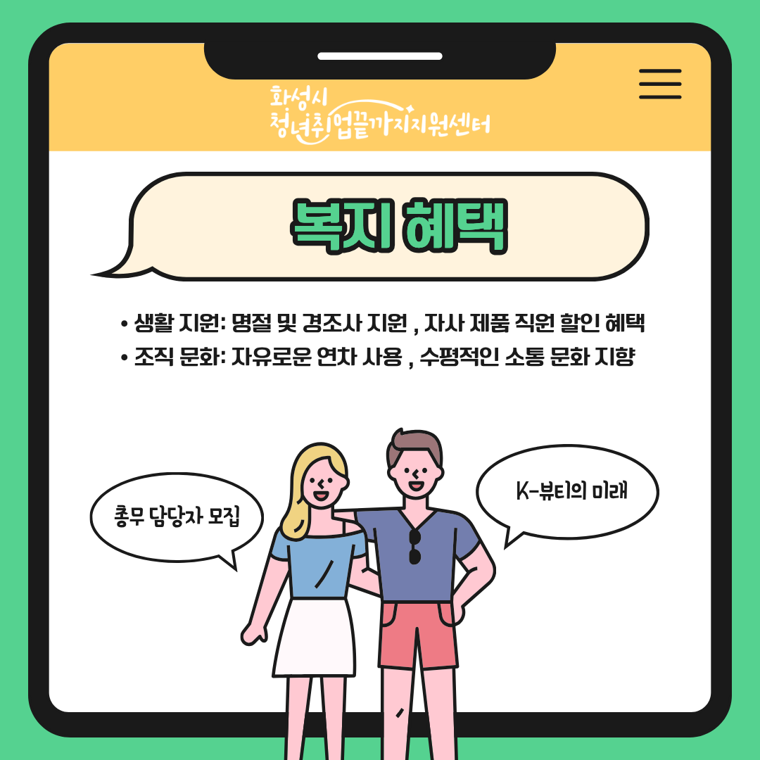 · 생활 지원: 명절 및 경조사 지원 , 자사 제품 직원 할인 혜택