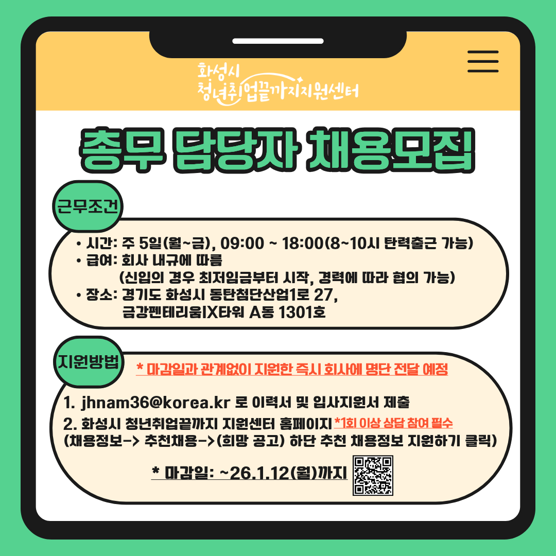 · 마감일: ~26.1.12(월)까지(*마감일과 관계없이 지원한 즉시 회사에 명단 전달 예정)
