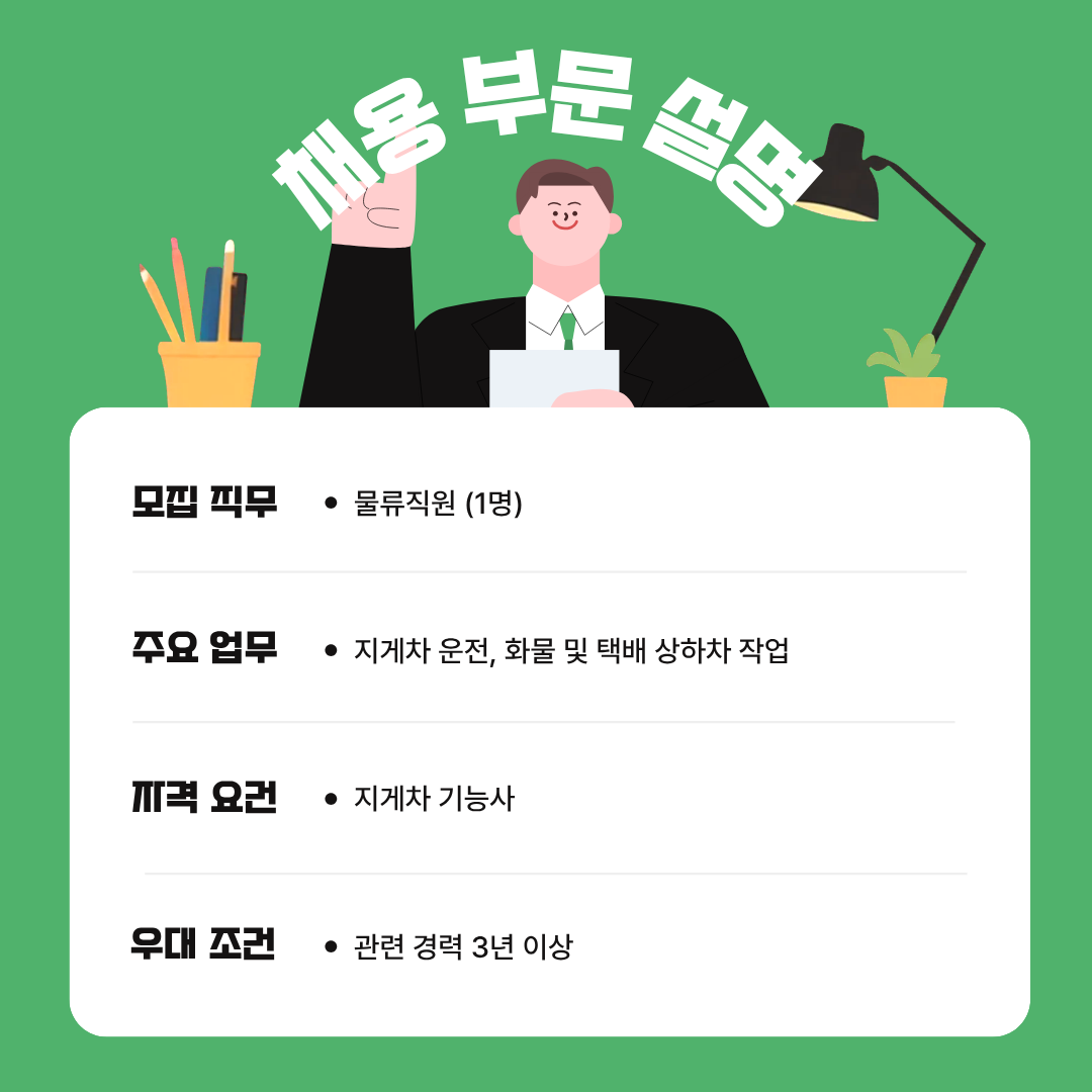 ■ 직무내용: 지게차 운전, 화물 및 택배 상하차 작업