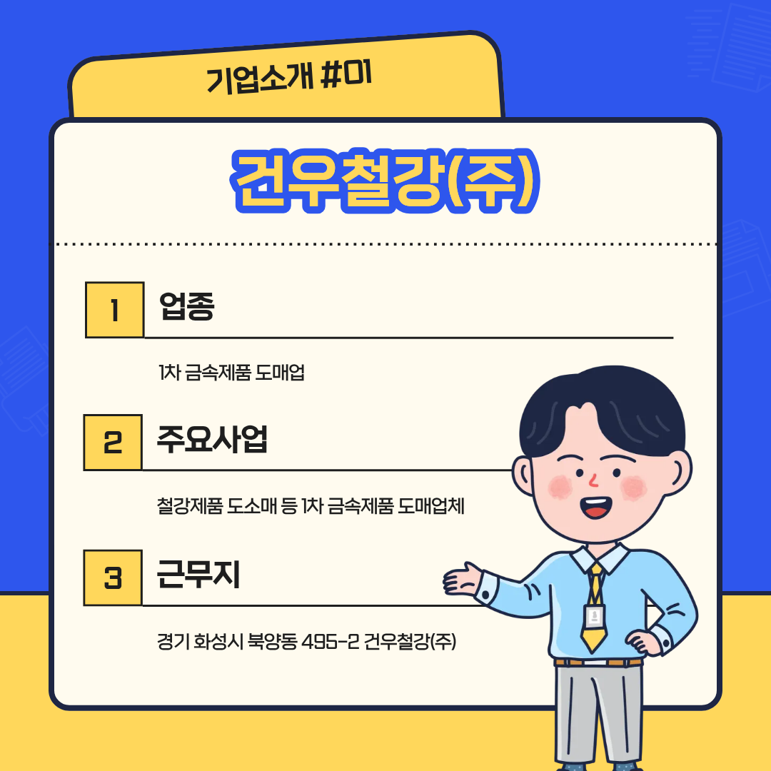 ■ 근무지: 경기 화성시 북양동 495-2 건우철강(주)