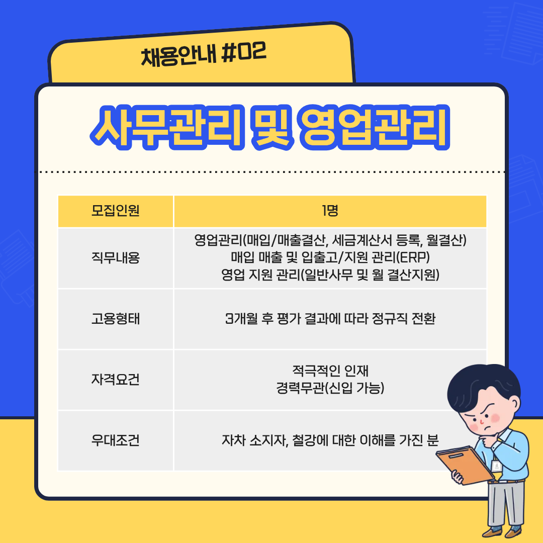 ■ 우대조건: 자차 소지자, 철강에 대한 이해를 가진 분