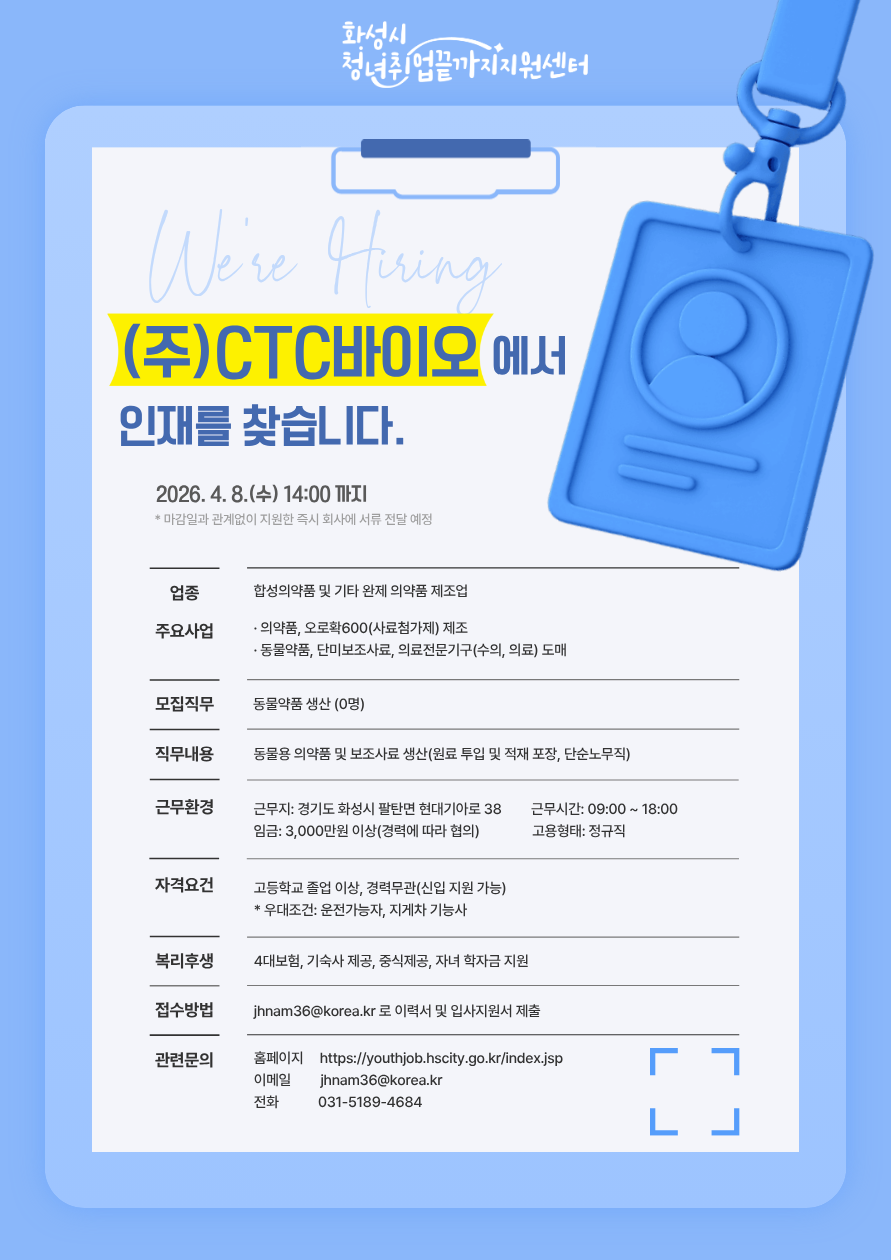 ■ 직무내용: 동물용 의약품 및 보조사료 생산(원료 투입 및 적재 포장, 단순노무직)